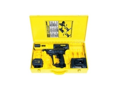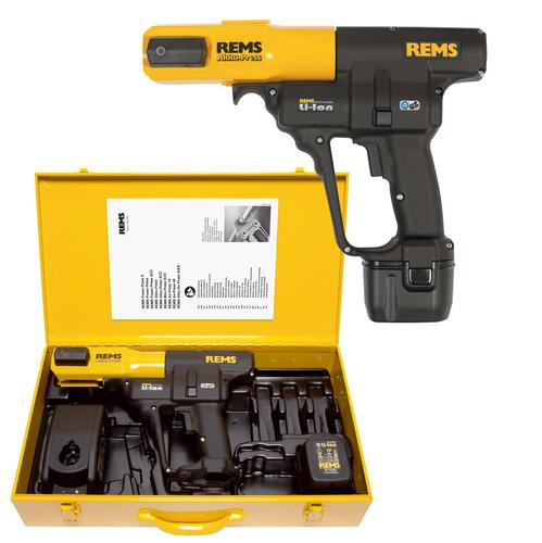 Stočné uloženie lisovacích klieští s automatickým zaistením. Akumulátor 12 V, 2,0 Ah, rýchlonabíjačka 230 V, 50-60 Hz, 50 W. V pevnom kufri z oceľového plechu. (REMS číslo výrobku: 571013)